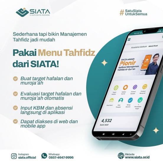 Fitur-fitur tahfidz di SIATA komplit, mulai dari tahap perencanaan hingga pelaporan otomatis serta berorientasi pada kemudahan pengisian guru
